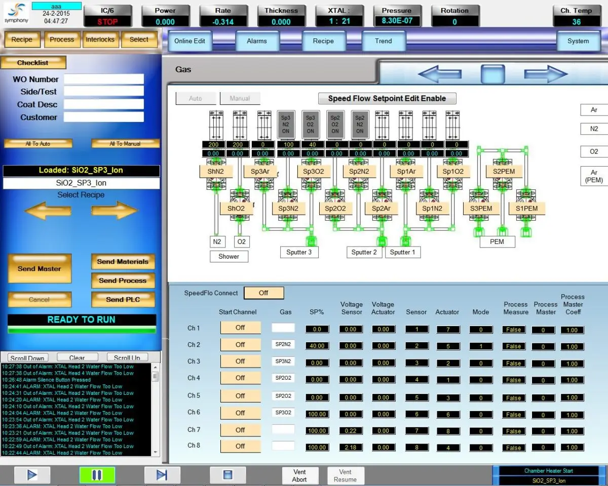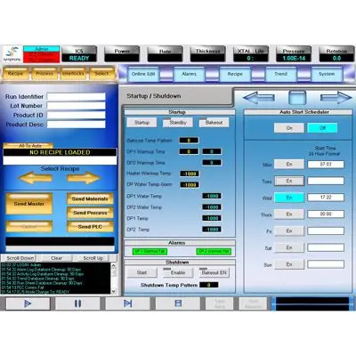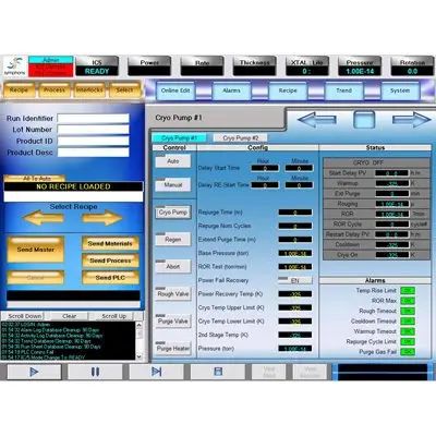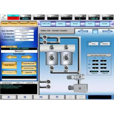 - All system components are configurable to provide simple integration of new hardware (i.e.: type and number of evaporation sources, type and number of vacuum pumps, etc).